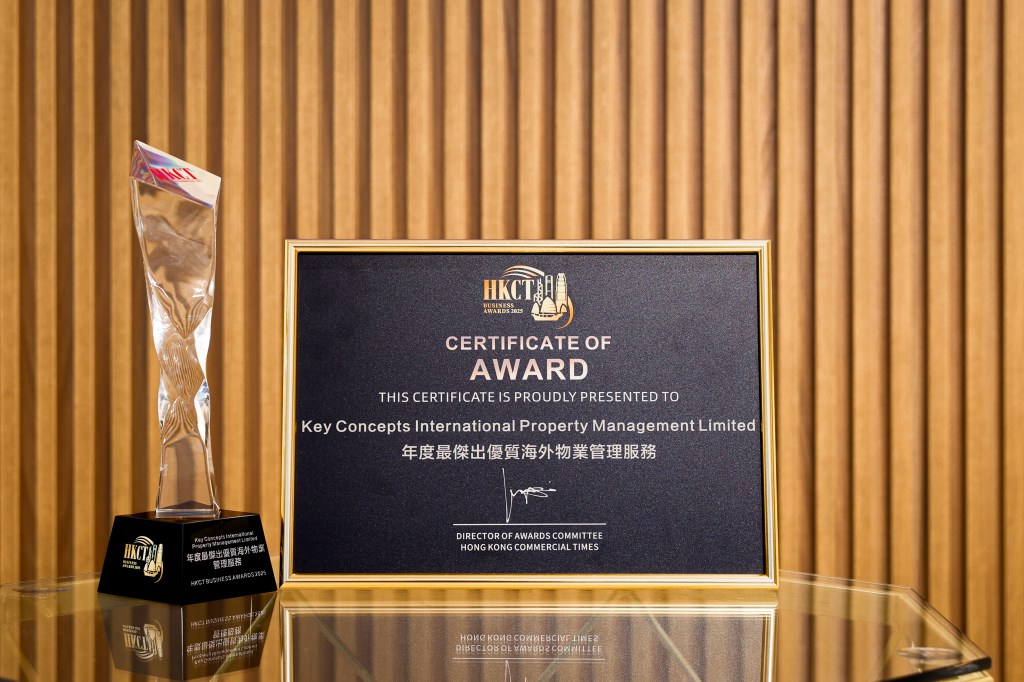 We are very honored that Key Concepts International Property Management Ltd. received the “The Most Outstanding Quality Overseas Property Management Service of the Year Award” from Hong Kong Commercial Times. The award was presented by Mr. Lok Ke-wei, Secretary General and Vice President of the Hong Kong Greater China SME Alliance Association. This honor not only confirms KCPM’s leading position in the overseas property management field, but also highly recognizes our business performance and service quality.